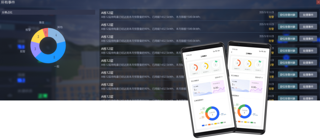 平台通过集成电力、空调BA、智能照明、给排水、车辆、门禁等系统建立统一的运营管理平台,对建筑安全生产各要素进行在线监测,并运用3D可视化技术直观呈现关键信息,提升资产管理与监控管理的效率。