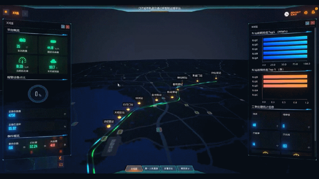 在交通基础设施领域,通过建立针对安防、环控、设备、环境等区域的三维虚拟模型,采用智能化感知技术分层分级对设备运行数据进行集成、算法处理和数字化分析,帮助客户达成从故障修、计划修转变为状态修的维修策略的目标,全面提升交通基础设施的安全和可靠性。