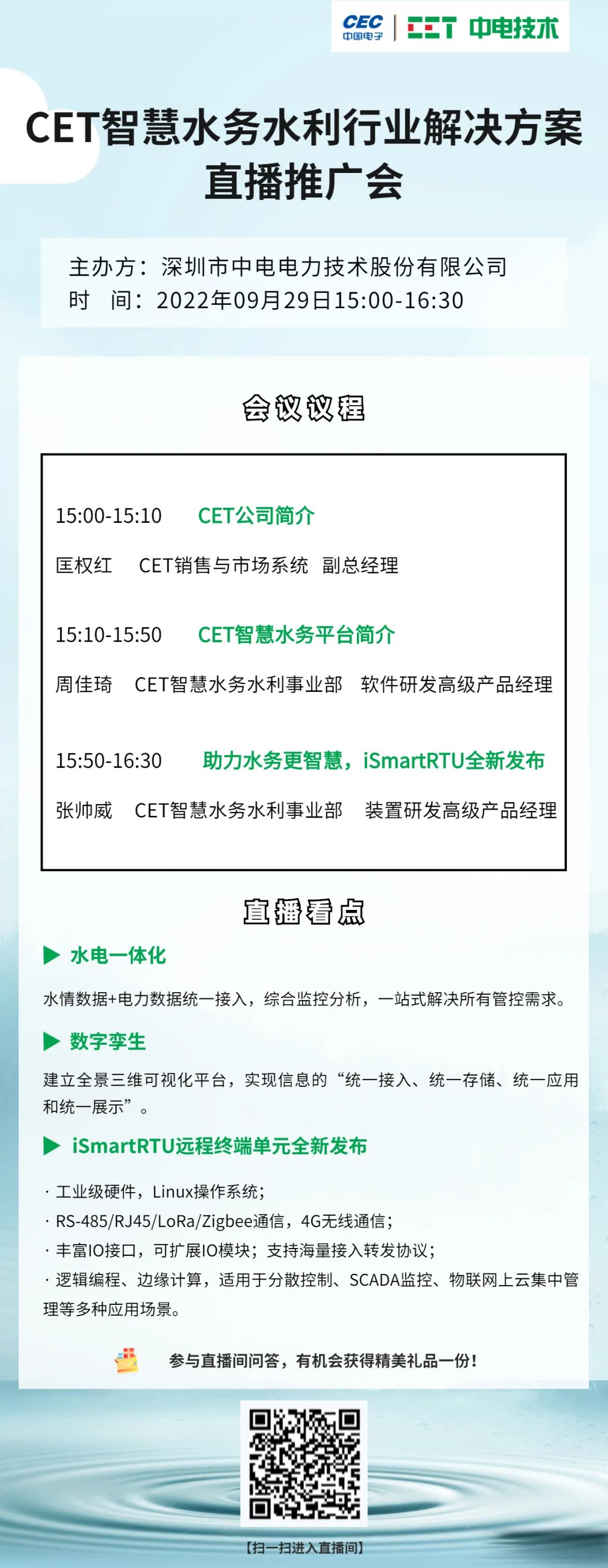 【直播预告】邀您参加CET智慧水务水利行业解决方案直播推广会