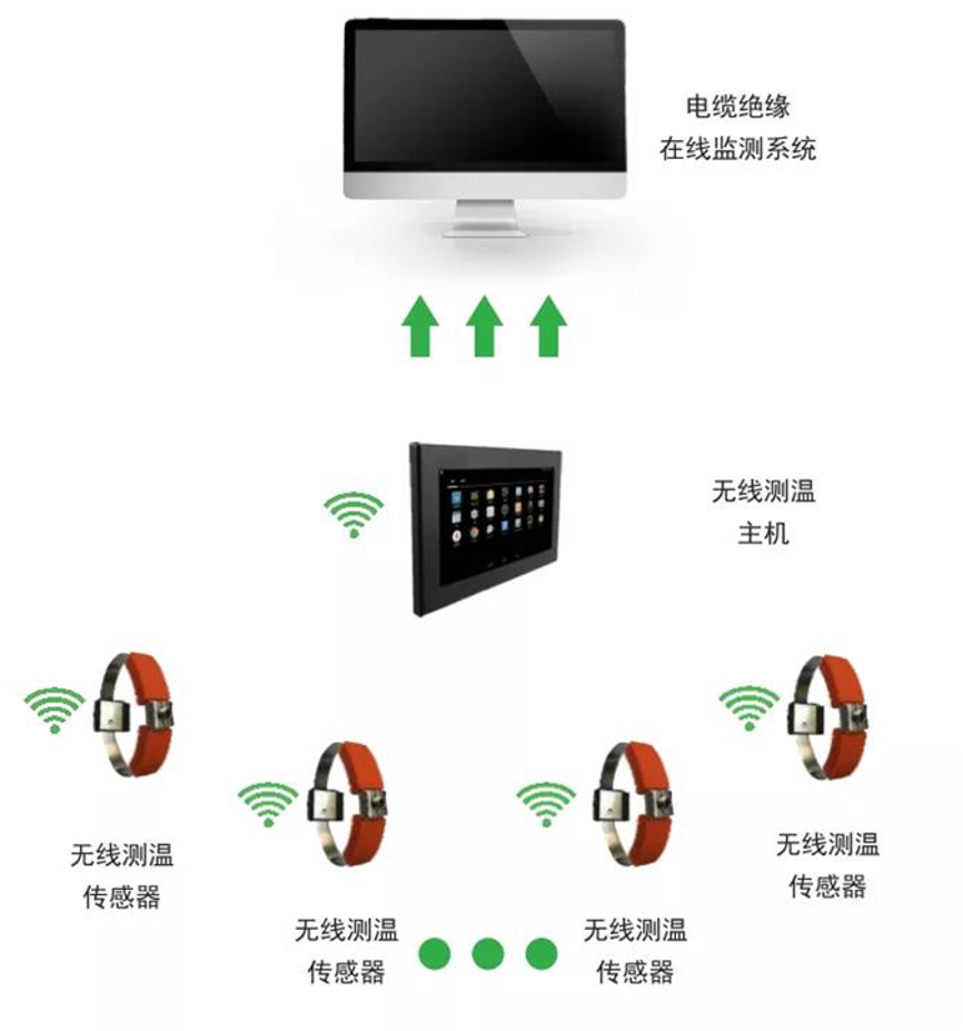 电缆无线测温系统采用无线方式进行信号传输,传感器可直接安装到电缆接头、高压开关、母线接头、户外刀闸、变压器等容易产生高温的电气接点处,与接收设备之间无电气连接,从根本上解决高压设备接点运行温度不易实时在线监测的难题。