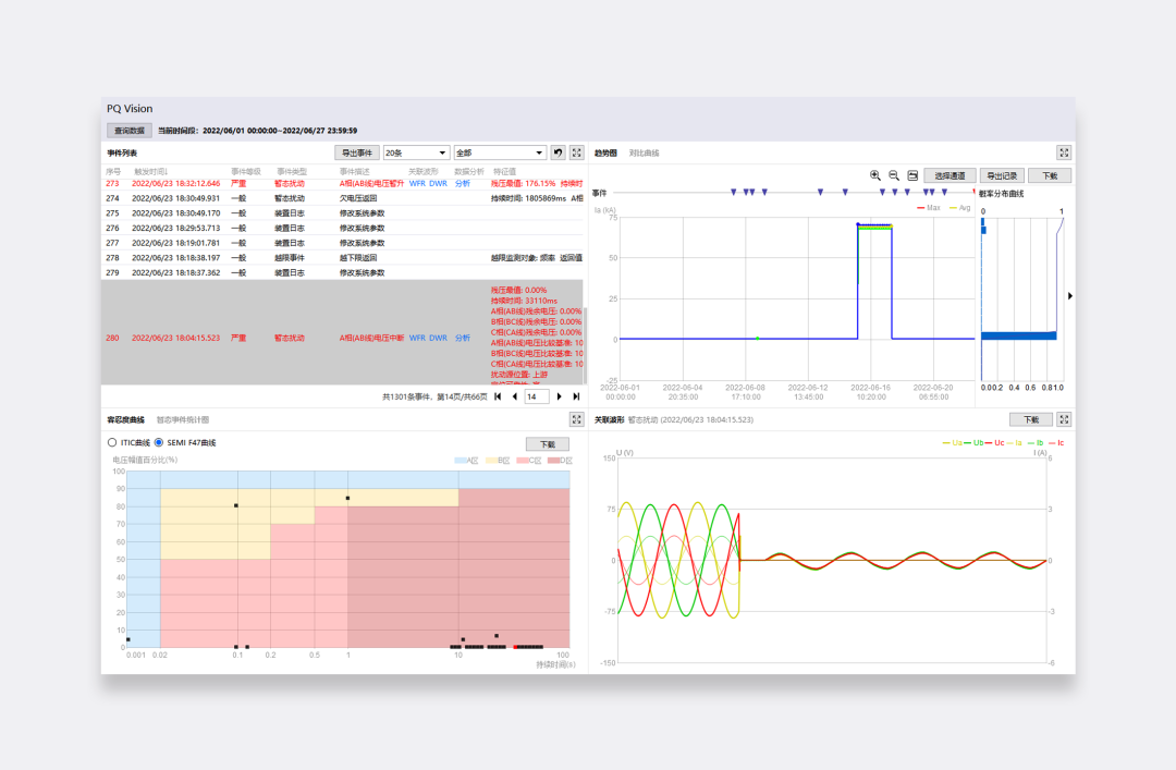 扰动源定位是电能质量分析的核心工作之一,iMeter系列装置结合DiagSys分析软件可对含有多个基本事件和扰动事件源的复杂扰动事件进行定位,有利于全面解释复杂扰动的完整过程和综合信息,对分析事件后果、追究事件责任以及治理电能质量污染具有重要的指导价值。