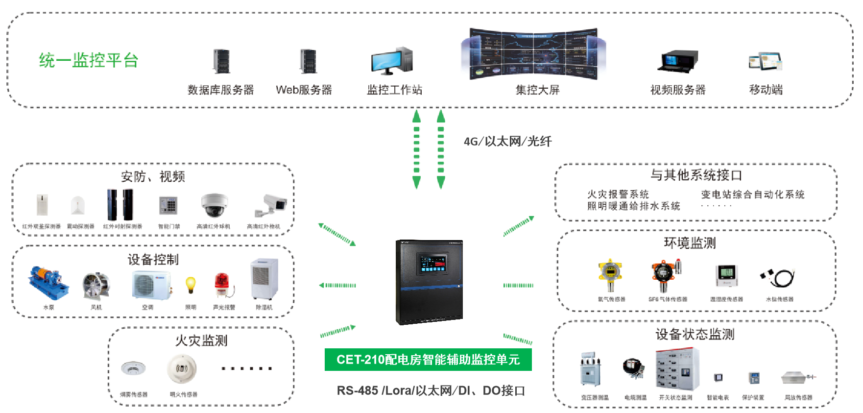 对此,CET推出基于物联网技术、云计算及现代通信技术等集成应用,以“全息感知和集中监管”为核心的CET-210配电房智能辅助监控单元。