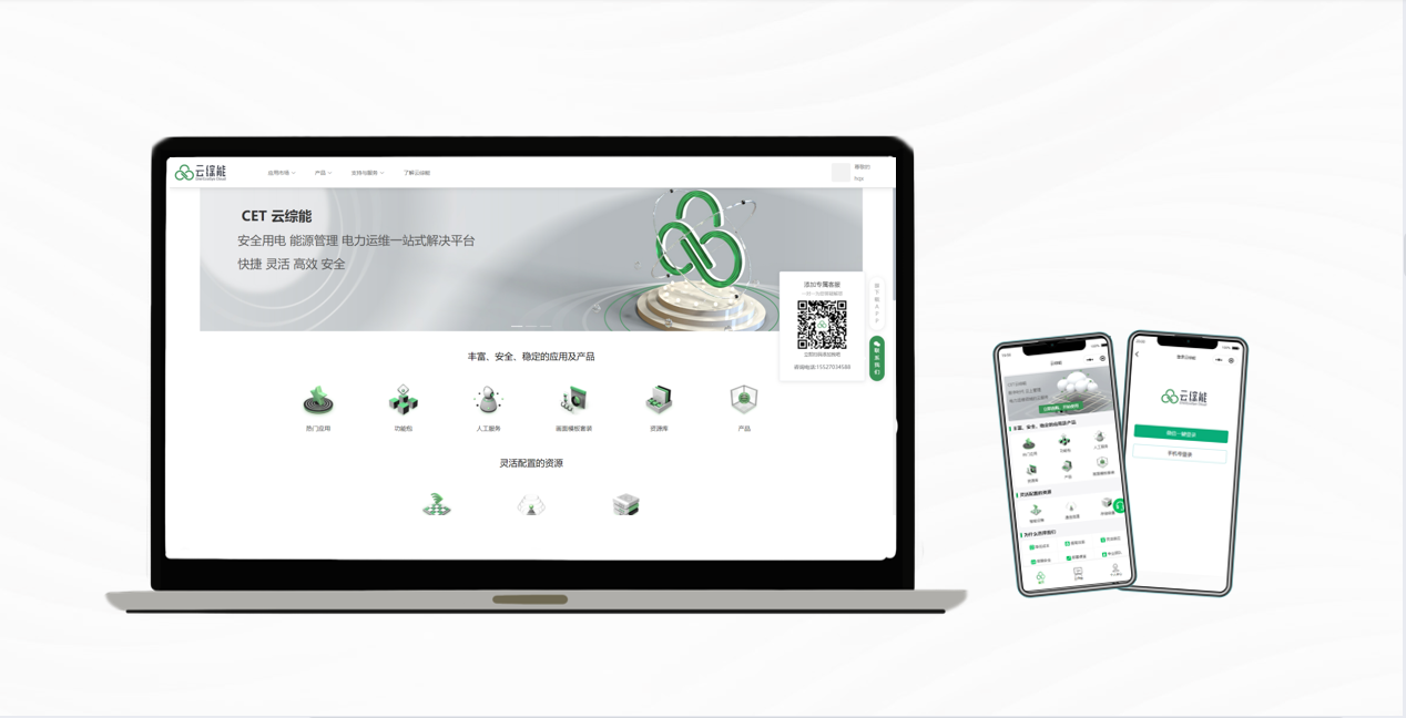 CET能源电力综合服务云平台,(简称“云综能”),提供基于物联网、云计算、大数据及移动互联网技术的 SaaS 公有云服务,并支持私有化部署,构建双碳目标和能耗双控政策下服务于用户侧智能用电、智慧用能、绿色低碳应用实践的开放型 综合服务生态平台。