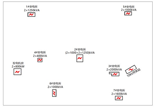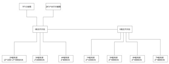 本此项目供电需求是4回供电,但项目现场周边能够接入电网的电源只有2回,故正常运行方式下,2回线路电源分别供电。