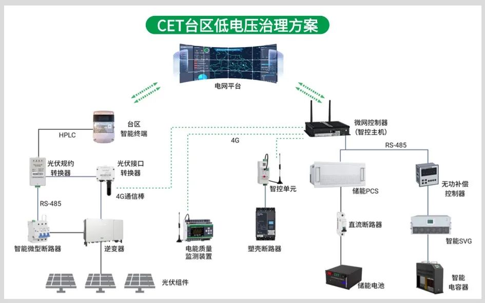 按照“分层分级、就地平衡”的原则,建立配电“台区、线路、区域”配网控制模型。依托台区智能融合终端,进行台区内源-网-荷-储-充的一体化协同控制。为确保新能源接入后电网安全稳定运行,CET中电技术全面参与电能质量监测、测试、评估、分析、控制等全业务流程的技术研究、产品研发、标准编制工作中,助力新能源并网后电能质量的“可监测、可分析、可管控”。