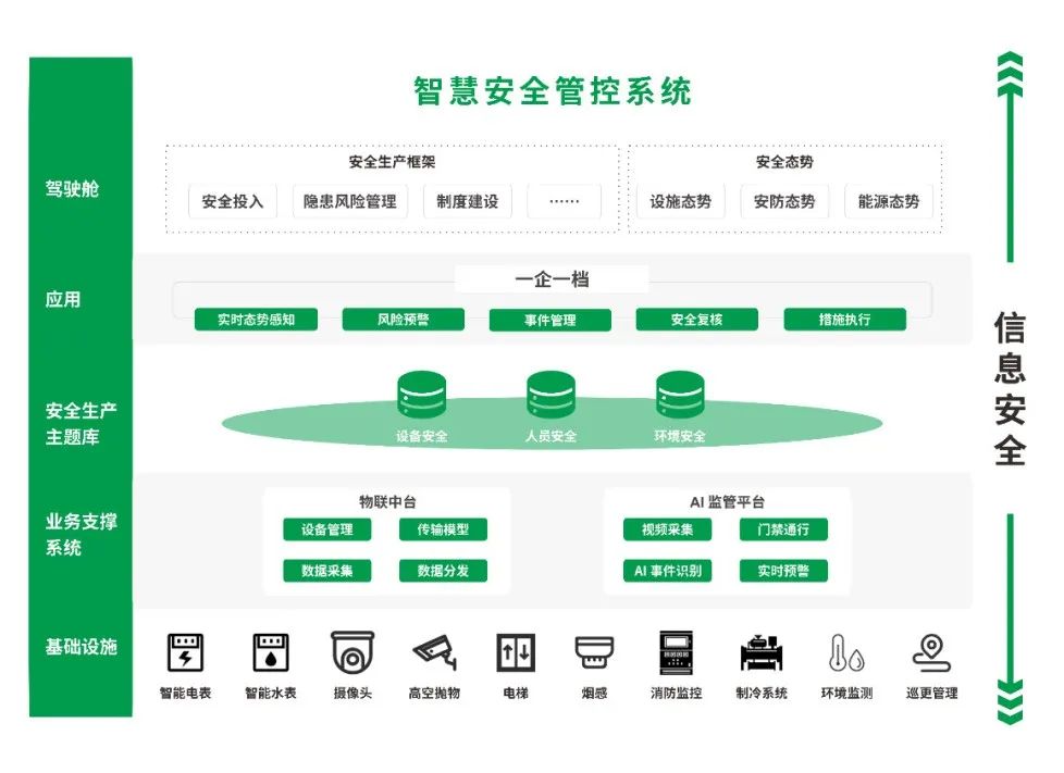 聚焦设备安全、人员安全、环境安全和信息安全四大主题库,依托物联网、云计算、大数据、人工智能等技术纵向打通感知、预警、处置、评估、复核、执行全流程,横向高效整合企业各方资源,实现企业安全态势全盘掌控、资源统一调度和风险隐患快速处理,打造“智能互联、一企一统一调度、立体防控”的现代智慧安全管控系统。