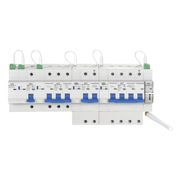 >> 模块化设计:由断路器模块、电源模块、通信模块组成,模块间通过Type-C 级联。1组电源+1通信模块最多可接入12 个断路器