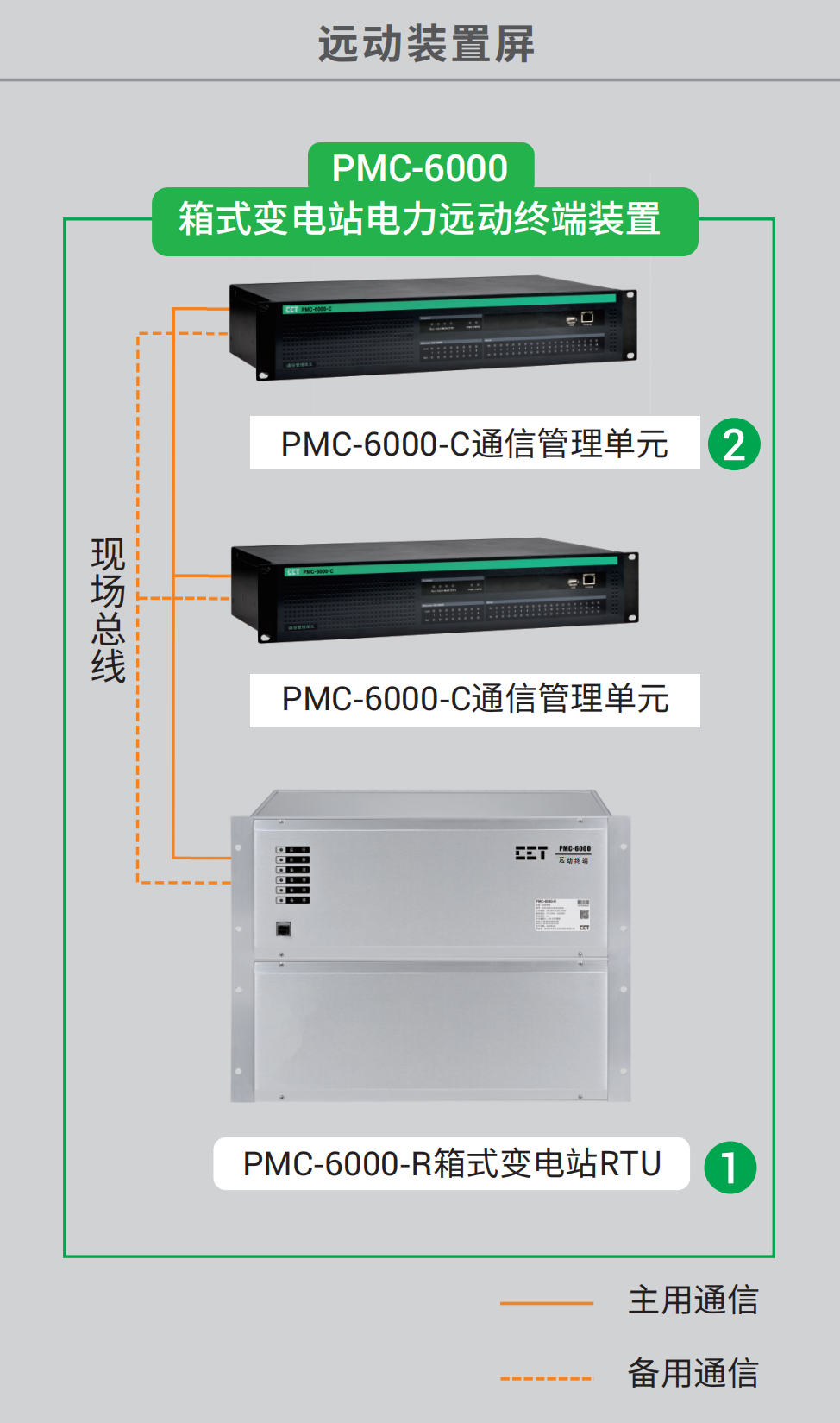 >> 可配合PMC-6000-C通信管理单元组成箱式变电所电力远动终端装置,作为铁路信号电源箱式变压器的配套监控设备,安装于铁路箱式变电站、开关站、低压变电所或者其他遮蔽场所