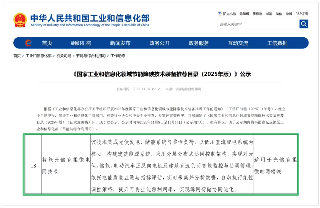 CET智能光储直柔微电网技术入选《国家工业和信息化领域节能降碳技术装备推荐目录》