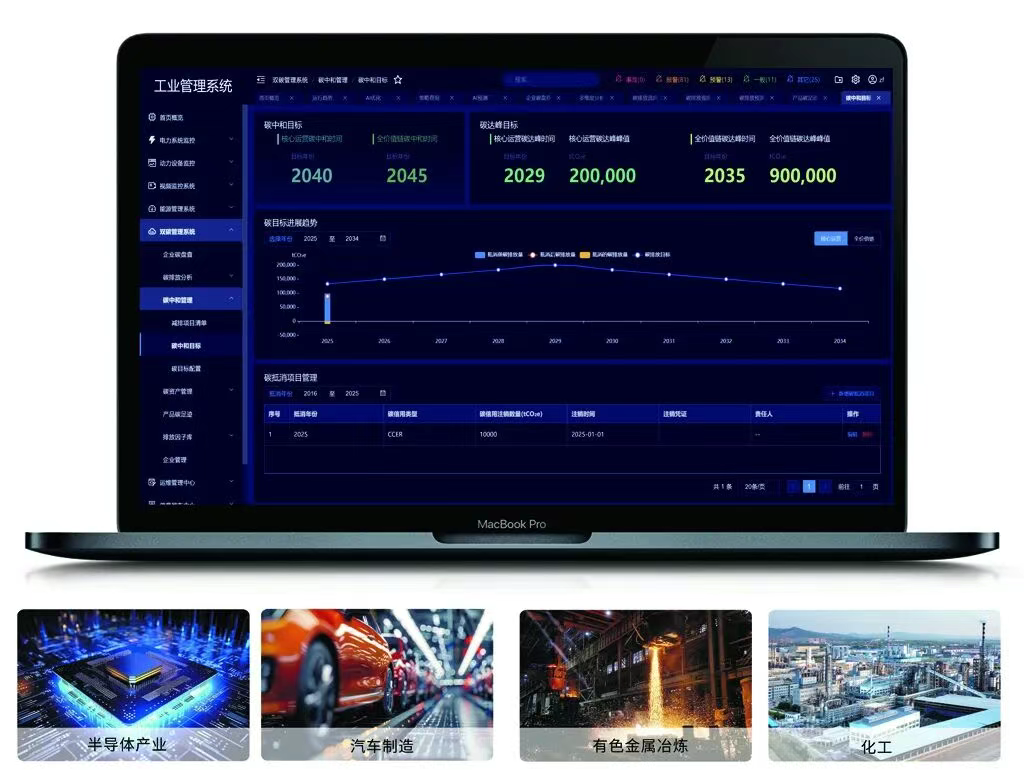 面向半导体产业、汽车制造、有色金属冶炼及化工企业,提供能源与碳排放管理功能,实现企业能碳数字化监控,能源调度智能化,碳排放分析科学化,助力客户降本增效和节能降耗,助力企业实现绿色低碳转型与可持续发展。