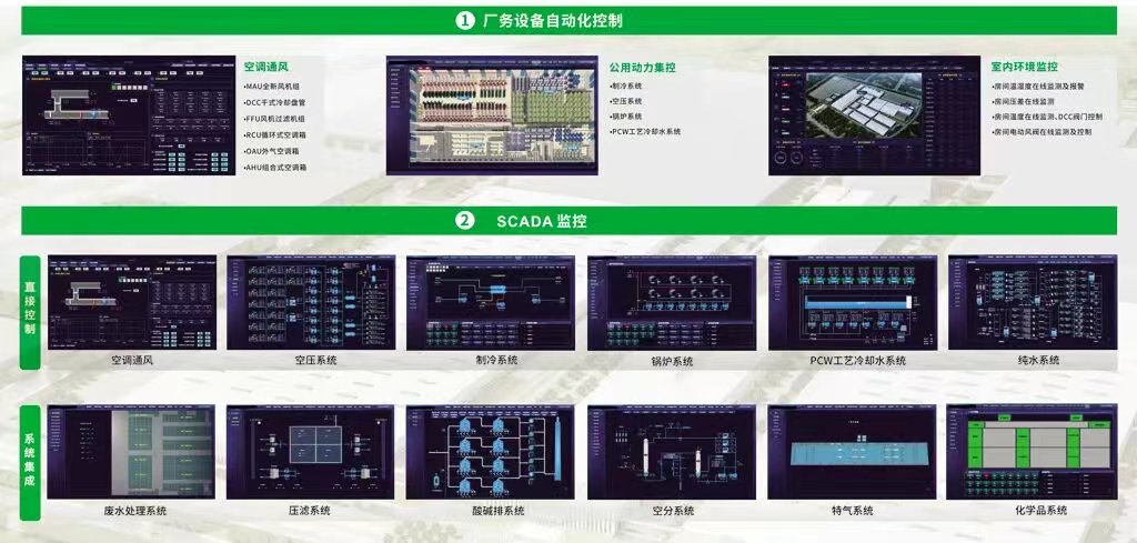 系统采用“直接控制+系统集成”的管理方式,既可直接管控空调暖通、循环水、空压系统,又能无缝集成电力监控、废水、特气化学品等系统,从而实现系统实时状态集中可视化,保障各系统之间的智能联动运行,确保设备运行稳定,筑牢安全联锁与报警防护线,最终助力客户实现厂务设备安全、可靠、高效运行。